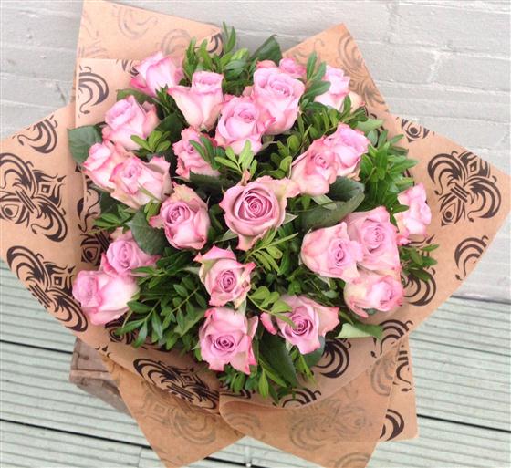 24 Vintage memory lane roses in hand tied bouquet