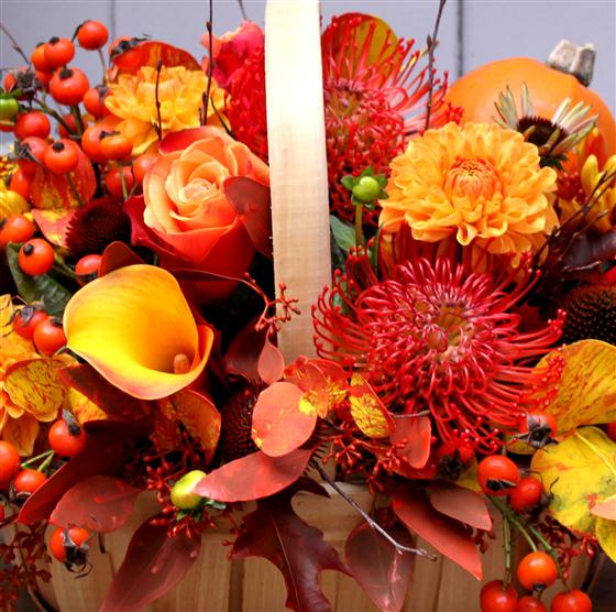 Using the brightest, boldest seasonal reds, golds and oranges, our autumn basket makes a lovely gift for someone special.