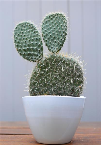 Opuntia 'Mickey Mouse' Cactus presented in a ceramic container.