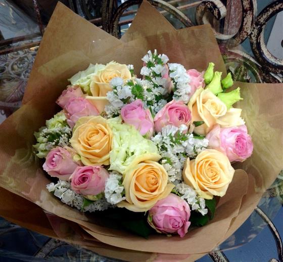 • This bouquet is gift wrapped in cellophane/paper with a natural raffia or similar bow