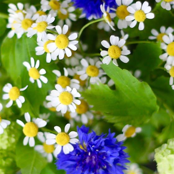 Cornflowers, Fever Few and Viburnum.
